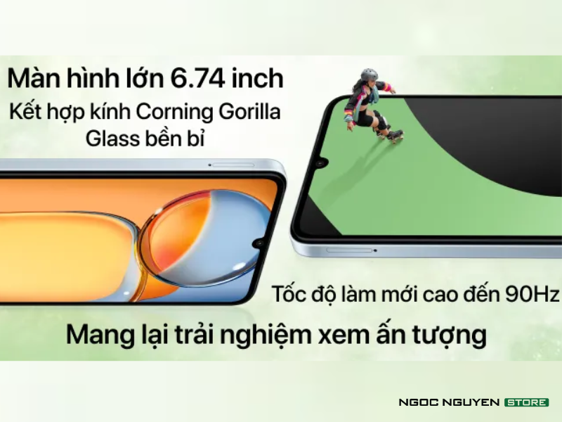 Với kích thước lớn lên đến 6.74 inch, Xiaomi Redmi 13C tạo ra một không gian hiển thị rộng, đủ lớn để bạn tận hưởng nội dung một cách thoải mái và sâu hơn. Đặc biệt, điểm độc đáo nằm ở tần số quét 90 Hz, giúp giảm thiểu hiện tượng giật lag khi cuộn nội dung hoặc chơi game, tạo ra một trải nghiệm sử dụng mượt mà và thú vị.