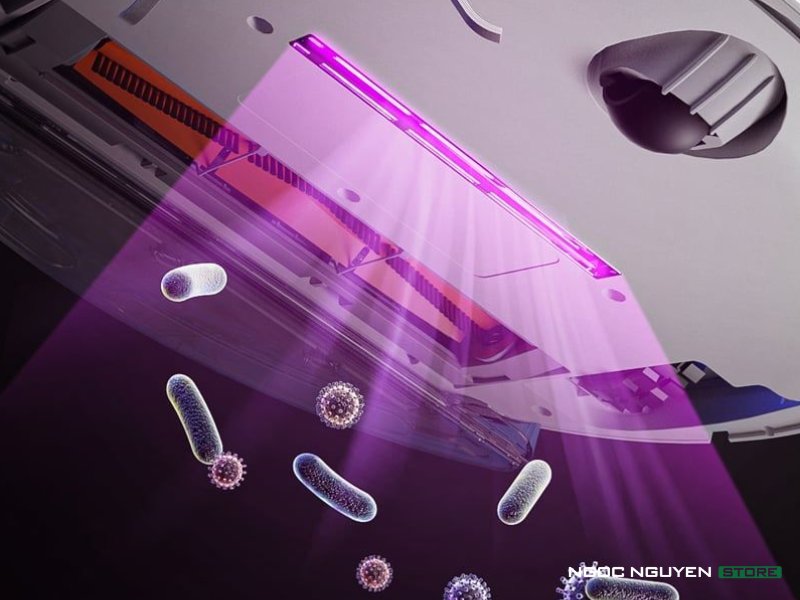 - Robot hút bụi được trang bị đèn UV và khử trùng sàn trong quá trình vệ sinh, và trạm nối ozon hóa hỗn hợp không khí bụi đi vào để khử trùng, loại bỏ mùi khó chịu và ngăn chặn sự phát triển của vi khuẩn.