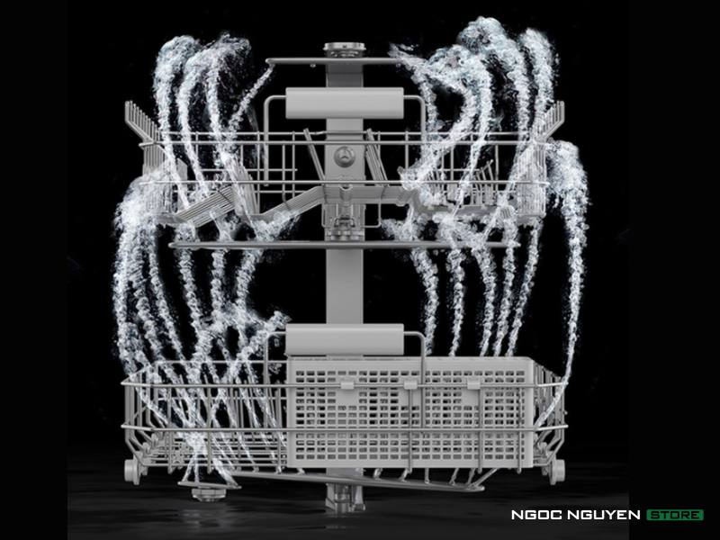 Đối với việc làm sạch, thương hiệu tuyên bố có bốn vòi phun tạo ra 27 cột nước áp suất cao, nhiệt độ cao để làm sạch 720 độ. Làm sạch siêu sâu này rất thích hợp cho các món ăn bị dính dầu hoặc các chất khác khó làm sạch thông thường.
