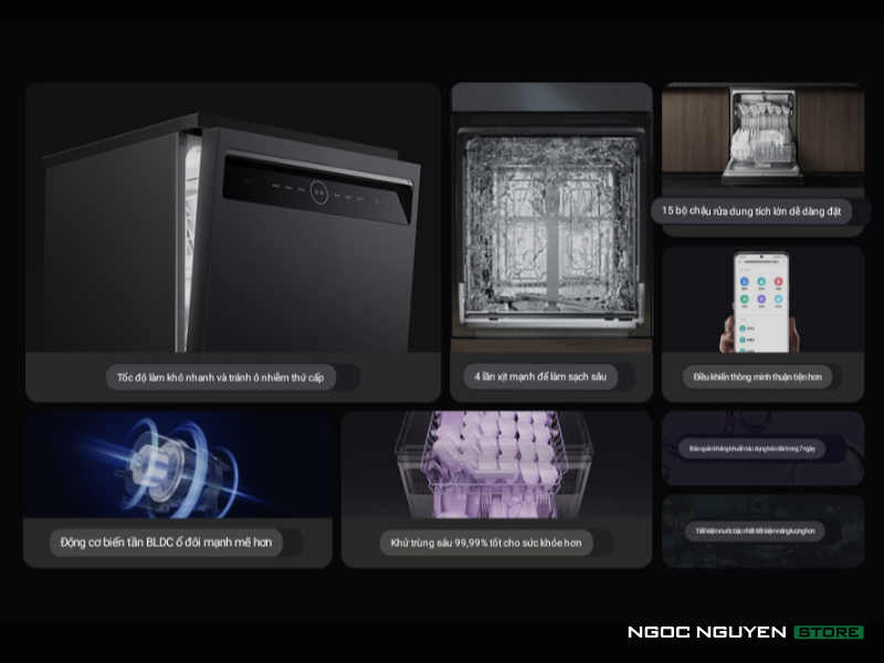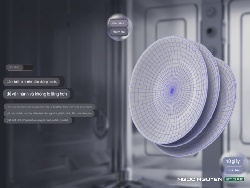 Máy rửa bát cũng có thể phát hiện mức độ bẩn một cách thông minh nhờ hệ thống phát hiện chất lượng nước quang học kết hợp với thuật toán AI thông minh. Mất 10 giây để xác định mức độ bẩn, tự động điều chỉnh chương trình giặt tốt nhất và điều chỉnh thời gian giặt một cách thông minh.
