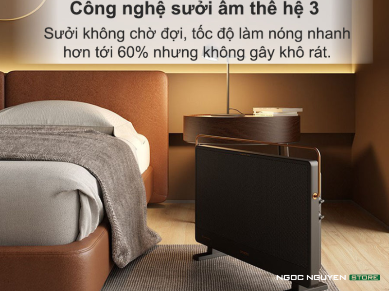 Điều độc đáo là khả năng tối ưu hóa bức xạ nhiệt thông minh, tăng tốc độ làm ấm đến 60%. Máy sưởi Graphene không chỉ đáp ứng nhanh chóng mà còn mang lại trải nghiệm ấm áp, hiệu quả và tiện ích, là sự kết hợp hoàn hảo giữa tiện nghi và công nghệ.
