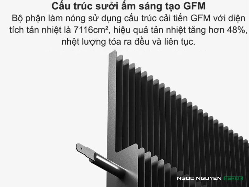 Bộ phận làm nóng của Máy sưởi Smartmi Graphene GR-H đặc trưng bởi công nghệ tiên tiến GHM, kết hợp với thân tản nhiệt rộng lớn, đạt 7116 cm². Với diện tích tản nhiệt gấp đôi so với các máy sưởi cùng loại, máy không chỉ giữ nhiệt lượng mà còn tăng hiệu ứng nhiệt hiệu quả lên đến 48%.
