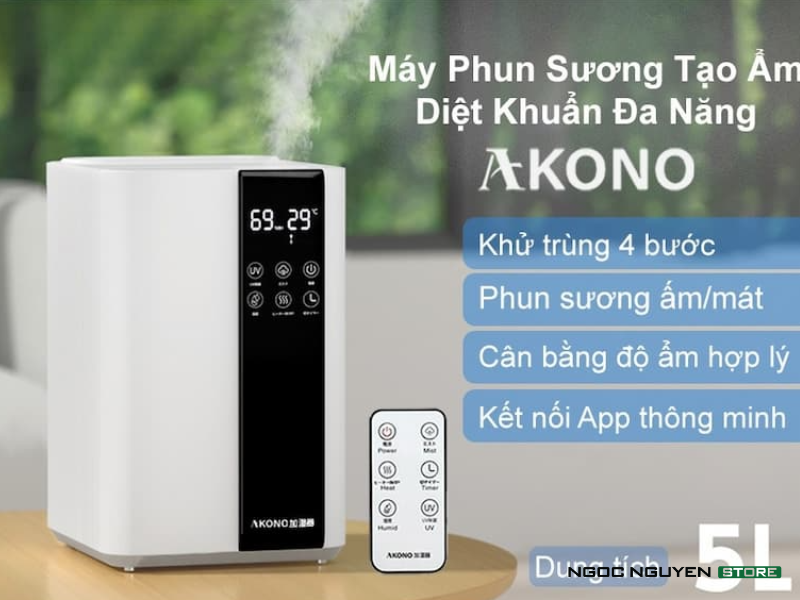 Máy tạo ẩm phun sương Akono AK-H305 thuộc dòng máy thông minh với khả năng khử khuẩn UV nhiệt độ cao. Vì thế đây đang là sản phẩm được khách hàng đánh giá cao trên thị trường hiện nay. Cụ thể bài viết dưới đây Ngọc Nguyễn Store sẽ giới thiệu đến bạn máy tạo ẩm Akono AK-H305 thông minh.