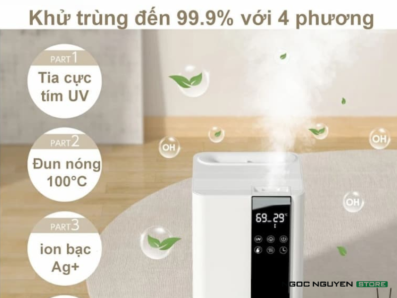 Máy tạo ẩm Akono AK-H305 không chỉ sử dụng công nghệ đun nóng nước mà còn có hệ thống tia cực tím UV-C khử trùng hiệu quả đến 99,9%. Hệ thống này giúp phá hủy DNA, RNA của vi khuẩn, tiêu diệt và hạn chế khả năng sinh sôi của chúng.