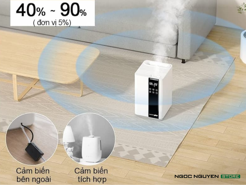 Với máy tạo ẩm phun sương Akono AK-H305, bạn có thể dễ dàng thiết lập mức độ ẩm mong muốn từ 40 đến 90%. Đáng chú ý, máy tạo ẩm Akono còn được trang bị bộ cảm biến nhiệt độ và độ ẩm bên ngoài, mang lại sự chính xác cao và theo dõi thời gian thực. Điều này giúp bạn dễ dàng điều chỉnh mức độ ẩm phù hợp với nhu cầu sử dụng của mình.