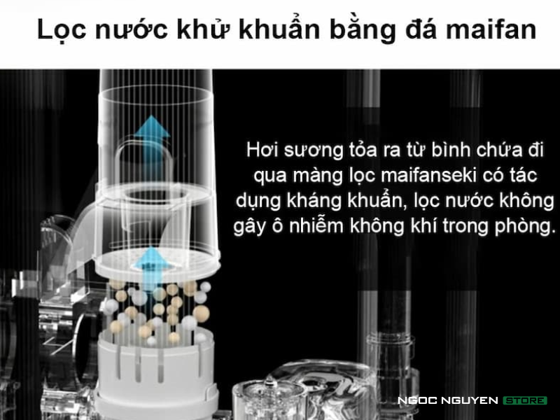 Màng lọc đá maifan của máy tạo ẩm phun sương Akono AK-H305 có khả năng kháng khuẩn hiệu quả trong vòng 24 giờ. Ngoài việc lọc nước an toàn, lớp lọc đá maifan còn giúp loại bỏ vi khuẩn và hơi sương khử khuẩn, mang lại cảm giác tươi mát và sạch sẽ.
