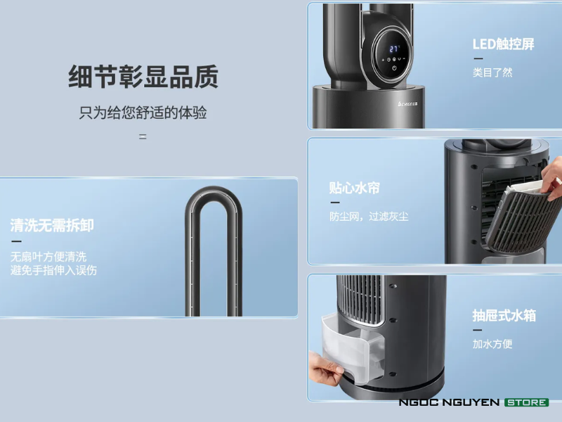 Với những ưu điểm tuyệt vời như mát hơn, ít tiếng ồn và đặc biệt là an toàn tuyệt đối cho trẻ nhỏ, quạt không cánh Lọc không khí tạo ẩm 3in1 đang dần được các hộ gia đình ưu tiên chọn mua hơn so với quạt cơ truyền thống.