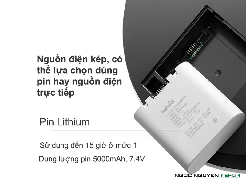 Quạt tích điện tuần hoàn không khí Keheal F4 được trang bị nguồn điện kép, người dùng có thể linh hoạt lựa chọn giữa việc dùng pin hay nguồn điện trực tiếp. Cùng với viên pin Lithium có dung lượng lớn lên đến 5000mAh, quạt Keheal F4 có thời gian sử dụng lên đến 15h ở mức độ gió 1.