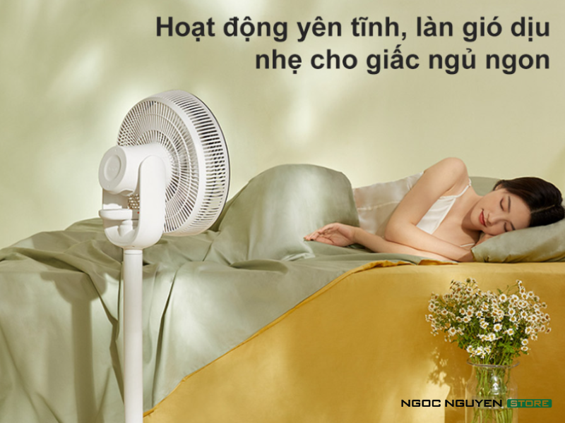 Quạt Keheal F4 sử dụng động cơ không chổi than DC sóng hình sin 180°, giúp cho quạt hoạt động một cách êm dịu, không gây tiếng ồn. Kết hợp với biến tần cảm ứng nhiệt độ trong chế độ giấc ngủ, Keheal F4 có thể tự động giảm tốc độ gió khi ngủ vào ban đêm, giúp giấc ngủ thêm an lành và thoải mái. Lúc này, mức độ tiếng ồn tối thiểu chỉ 13dB.