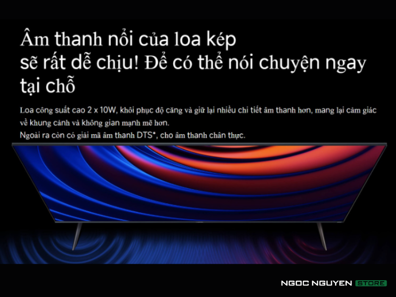 Tivi Xiaomi A Pro 75 inch được trang bị hệ thống âm thanh nổi gồm 2 loa có công suất mỗi loa là 10W, kết hợp cùng công nghệ giải mã kép Dolby Audio™ cùng DTS-X và DTS Virtual, tạo ra hiệu ứng âm thanh vòm sống động đem lại trải nghiệm tuyệt vời cho người sử dụng.