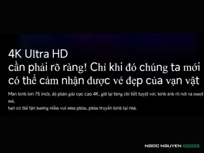 Tivi A Pro 75 inch có độ sáng màn hình lên tới 400 nits, giúp hình ảnh trở nên rõ nét và sắc sảo hơn các mẫu TV thông thường. Độ tương phản tự nhiên giữa vùng sáng và tối cân bằng, thể hiện rõ nét các chi tiết trên màn hình, đồng thời hạn chế tình trạng lóa, mờ hình khi ánh nắng chiếu trực tiếp.